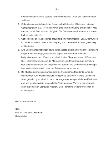 - weiterhin werden alle Abschiedsräume geschlossen.